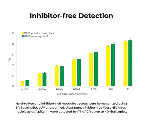 For optimal results and detection of viral target, collect sample in DNA/RNA Shield and perform Proteinase K treatment. In addition, add beta-mercaptoethanol to the Viral RNA Buffer prior to purification, as well as perform all steps at room temperature and centrifugation speeds at 10,000-16,000 x g to ensure no buffer retention.
