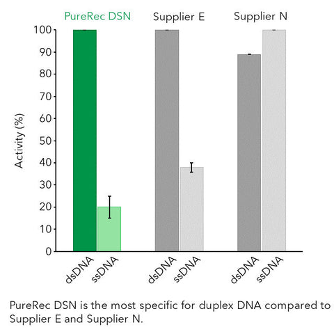 - Highest Specificity: Selectively digests dsDNA and DNA in DNA-RNA hybrids; virtually inactive towards ssDNA or RNA.