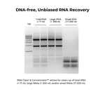 The RNA Clean & Concentrator kits are RNA clean up kits that provide a simple and reliable method for the rapid preparation of high-quality, RT-PCR-ready, DNA-free (R1013, R1014) RNA.
